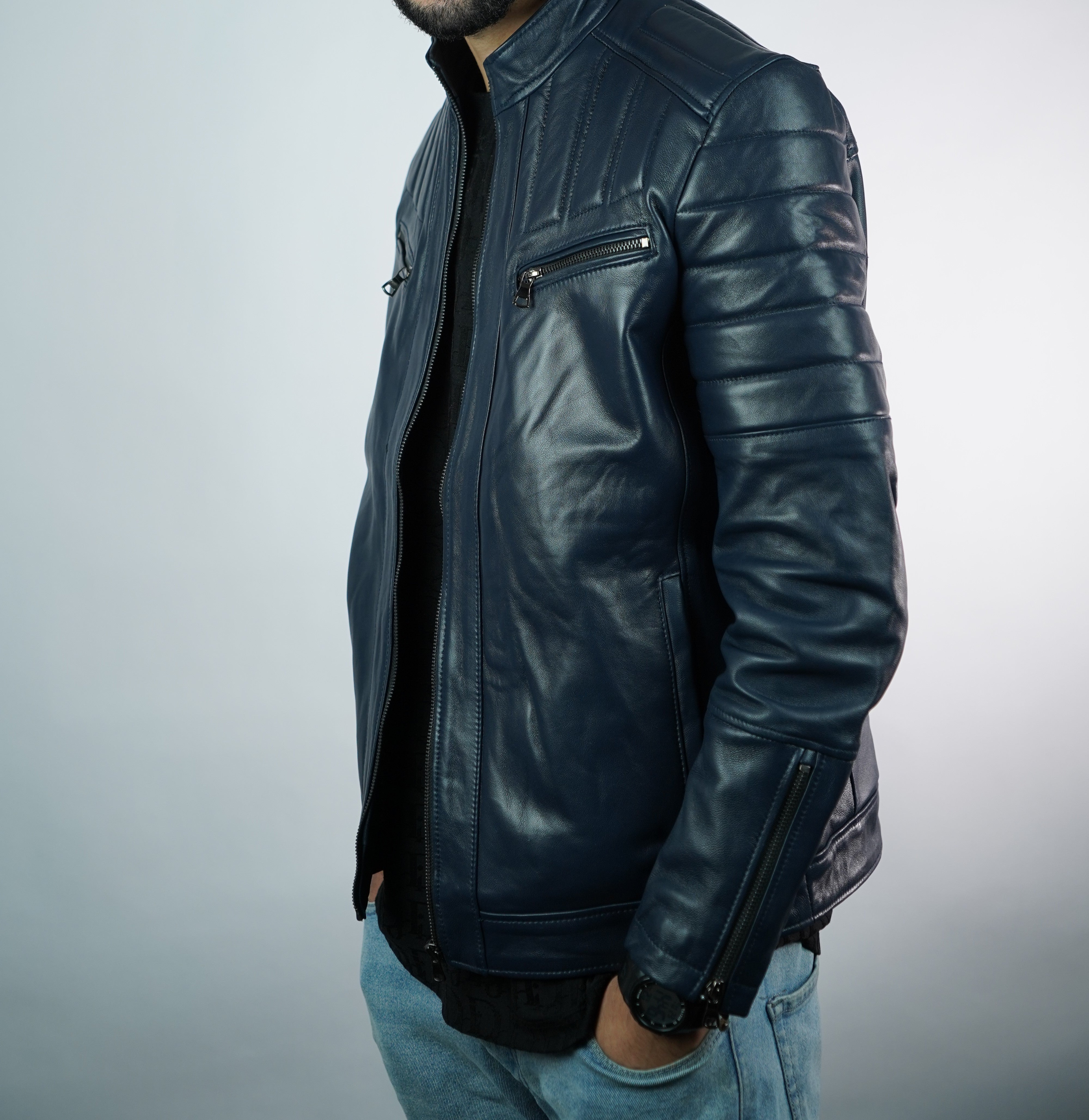 Discover timeless elegance with our Origin Bleu Marine leather jacket, crafted from premium genuine leather. Its deep navy blue tone brings a modern twist to the classic leather look, making it versatile for both casual and chic outfits. With a sleek fit, durable stitching, and a smooth finish, this jacket is designed for comfort and long-lasting style. Perfect for cooler days or evening outings, it embodies sophistication with an edge.