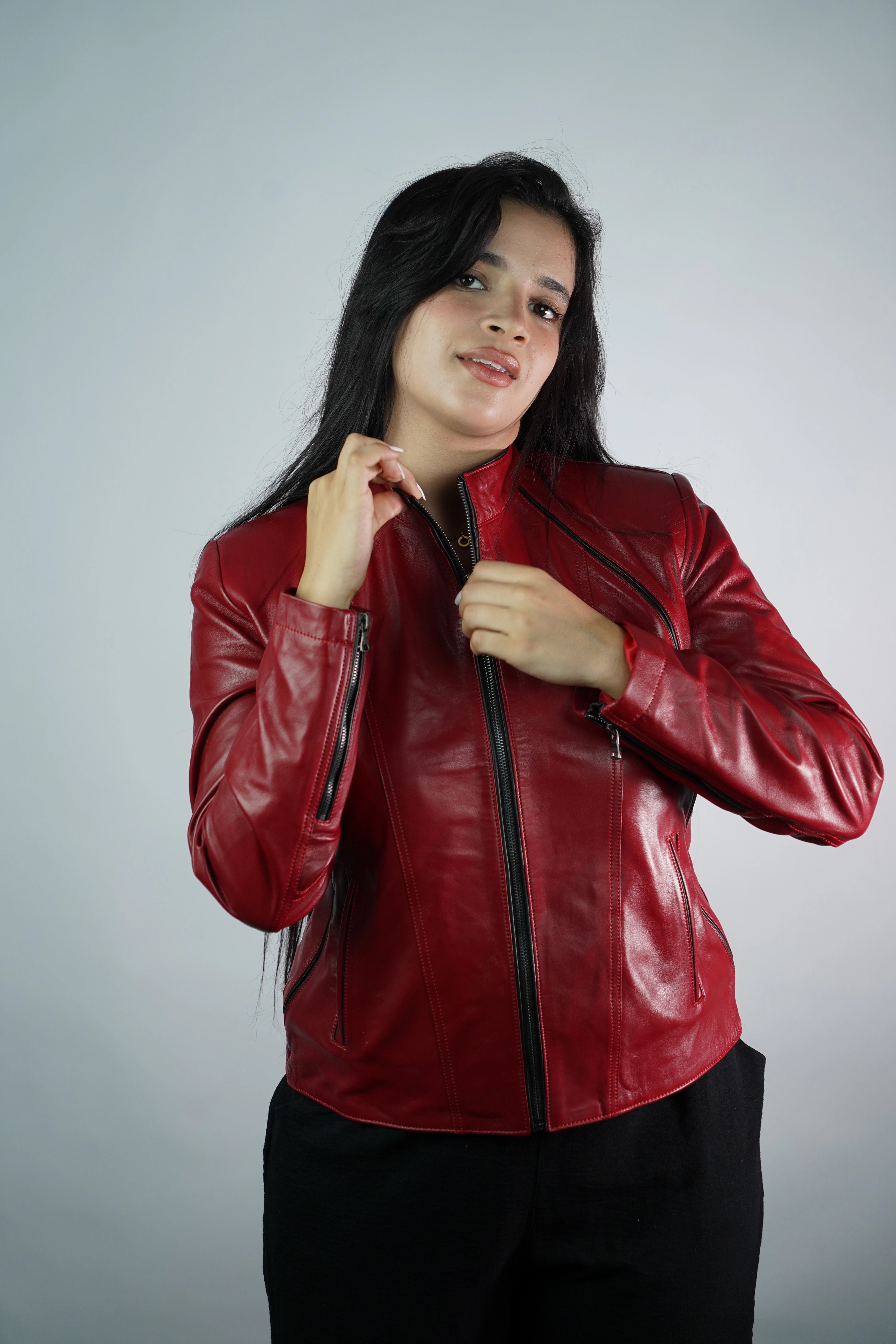 Turn heads with this stunning red faux leather jacket, designed for women who love to stand out with confidence and style. The bold color, slim fit, and modern details make it the perfect statement piece for your wardrobe.